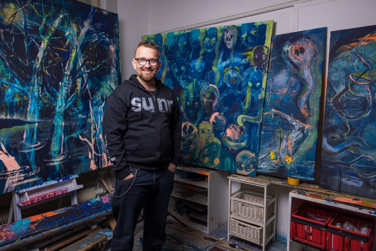 Trafo Gallery provides studios to several artists - Jan Kaláb, Jakub Nepraš, Michal Cimala and Zdeněk Trs.