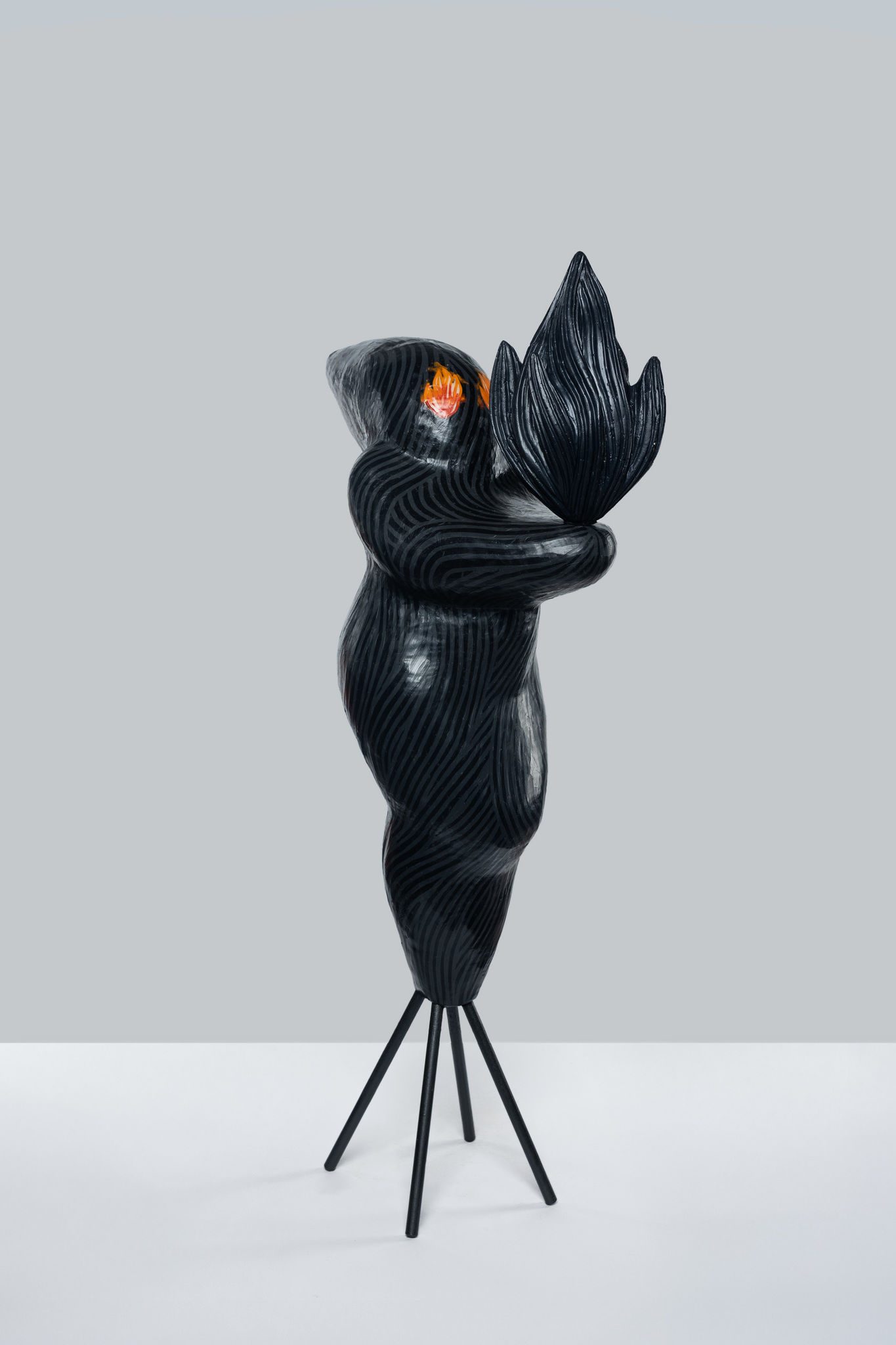 Preoccupation with female identity is manifested not only in the content of Dana Bartoníčková's sculptures, but also in the choice of soft material - wax. The author sees the main meaning of wax in its warmth, a feeling of warmth that does not disappear even from finished sculptures and paintings. The theme of femininity is closely connected with its relationship to clothing, which has defined us for centuries. Fabric as something very intimate, with which our skin is connected every day, at the same time primitively woven fabric as a certain return to the roots, protection, home, safety. From textile fibers, the sculptor also derived the principle of hatching and lines, with which she creates a special drawing on the sculptures indicating the features of the body and face. Her favorite subject is hair, a time-honored symbol of female beauty. Hair washing also touches on the theme of the elements contained in Bartoníčková's work in the form of fires, stones or water. The close connection with natural motifs resulted in the image of the starry sky inside the characters themselves, where in connection with the universe the author seeks peace and a compelling need to be in unity.
