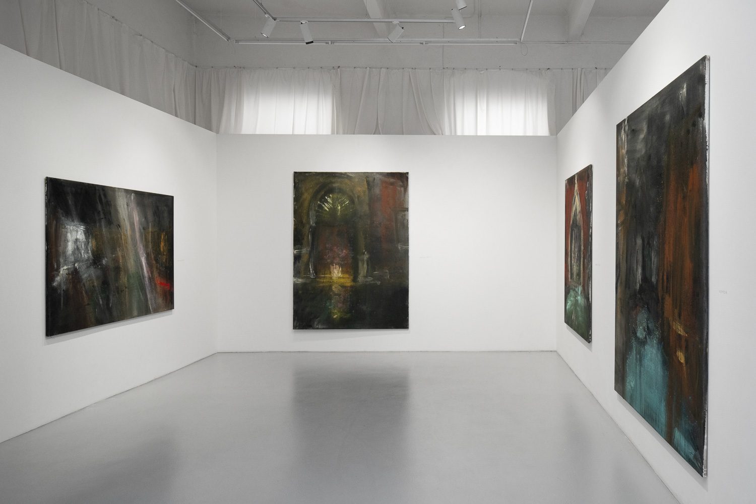 The title of Jakub Špaňhel's new exhibition already reflects his long-term fascination with Venice, which is increasingly prescribed in his work. The fact that it is a linguistic form used by Venetian, a locally historically defined language distinct from general Italian, suggests an even more personal relationship than before. Not only that, it is a magical city with a unique atmosphere, which is one of the most prominent art centers in Europe. After Vienna, it is also one of the places most Czechs visited first after the fall of the Iron Curtain. And now also the place where Jakub Špaňhel lives part of the year. His previous works depicted what Venice outwardly symbolizes rather than what it actually is. Be it the typical Byzantine basilica in Piazza di San Marco, the veduta with the Venetian lagoon or the famous glass chandeliers and mirrors from Murano. But something else appears for the first time in the new paintings. That is, Venice as he knows it now: side streets, flickering lights of the apartments of the last residents and night canals with turquoise black water...