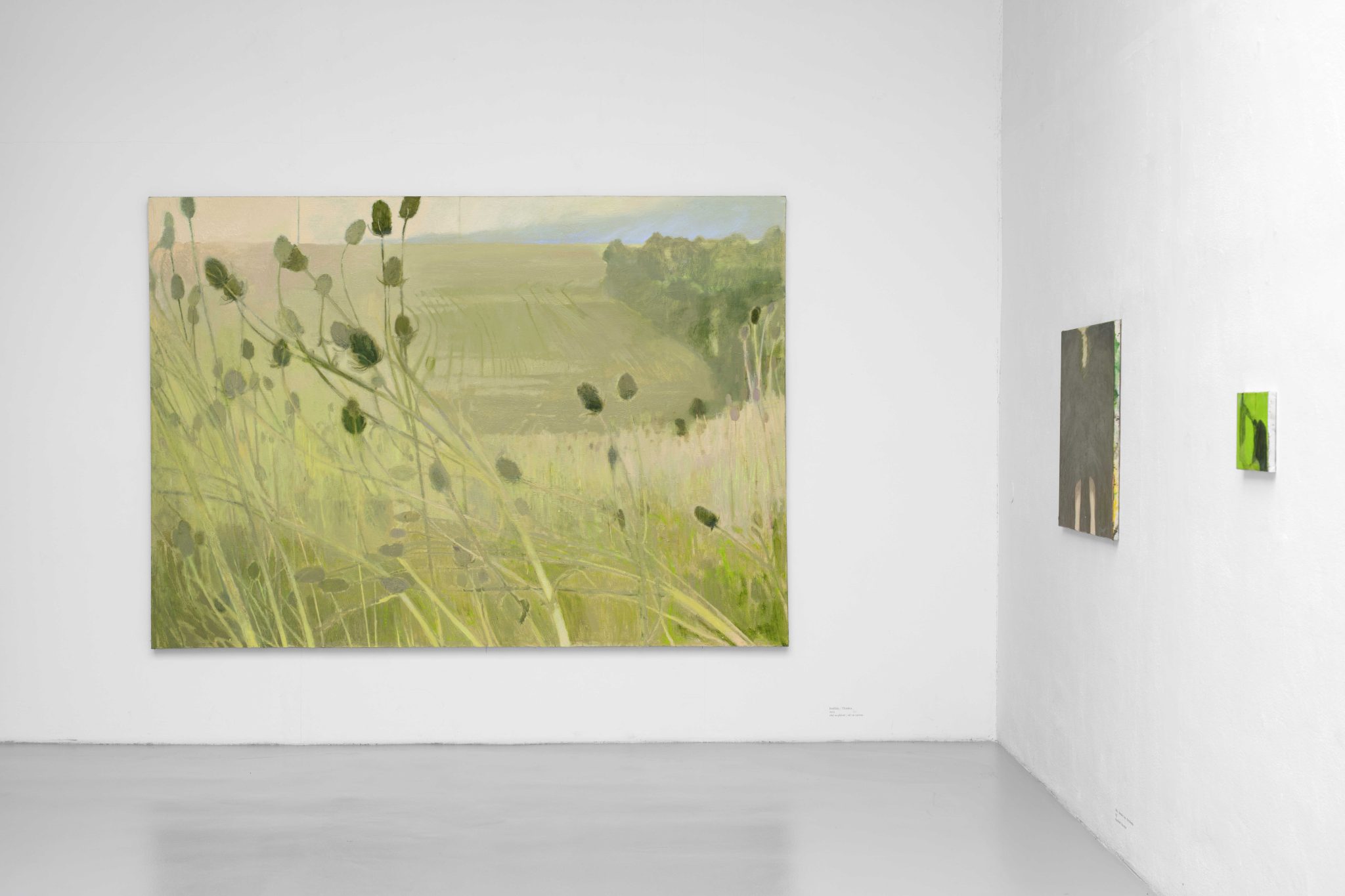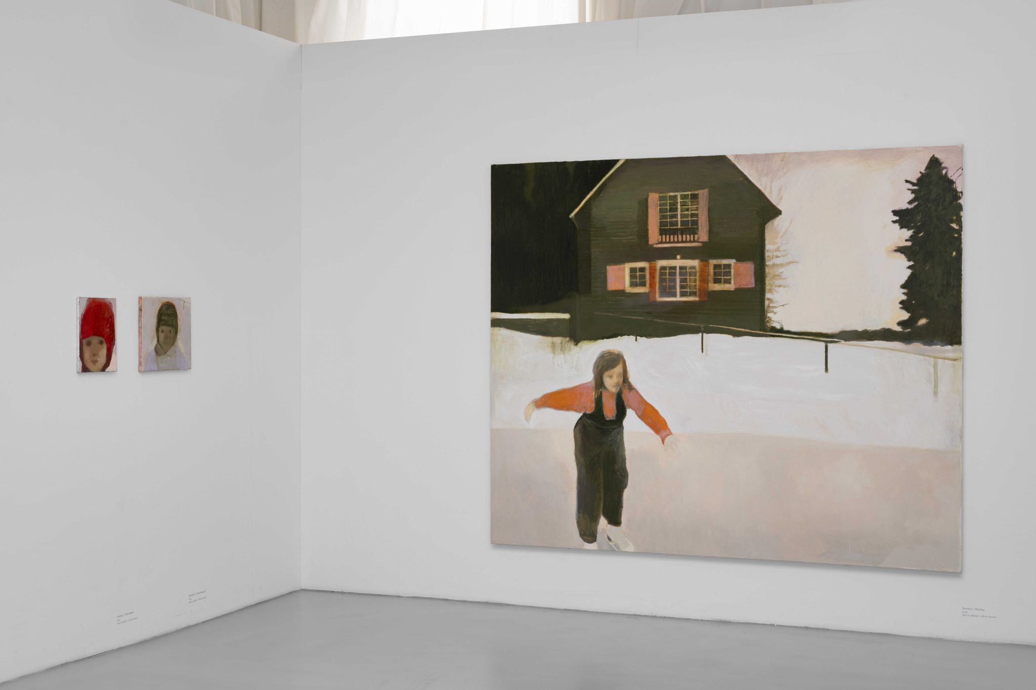 The exhibition Winter Apples awakens a kind of overarching atmosphere by means of its title, while at the same time allowing us a glimpse into the thematic diversity of the paintings, by means of which the artist examines her relationship to time and the passage thereof. In addition to specific childhood memories (Bruslení / Skating, 2023), there are objects (Křeslo / Armchair, 2023) and places (Bodláky / Thistles, 2023; Sad, 2022) associated with the movement of a searching memory and with direct sensory touch, in the intersection of which, and in the blending of internal model and external phenomena and appearance, the poetics of image and painting thrive. Ester Knapová, an outstanding young Czech colourist, creates her authentic painterly world out of an inner necessity to make time present in its elusiveness and instability. She transforms the amorphousness of time into a newly discovered stylistic morphology, which at the same time interprets inner experiential shifts, emotional layering and transformation. She lends time a beautiful form that appears to be an act of creative reconciliation with the melancholy that ticks in every minute that begins, and in every minute that ends for all of us.