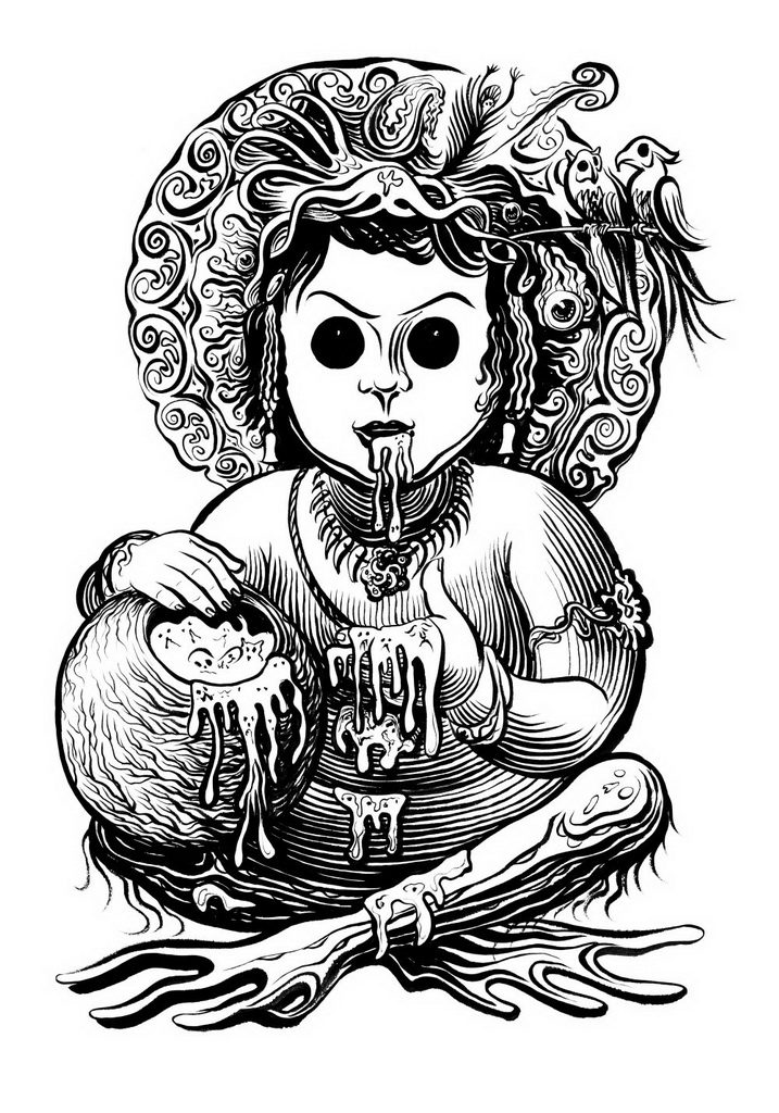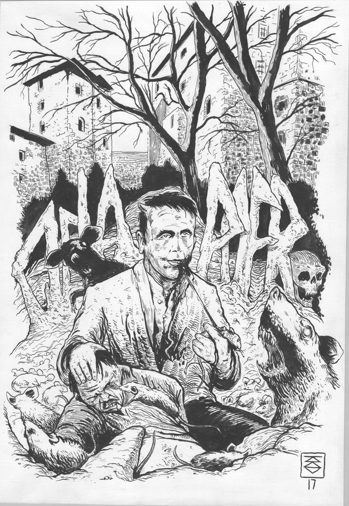 Cycle of ten black and white prints for the exhibition Life is Painful and Disappointing: Massacre vol. 1, Lovecraft.