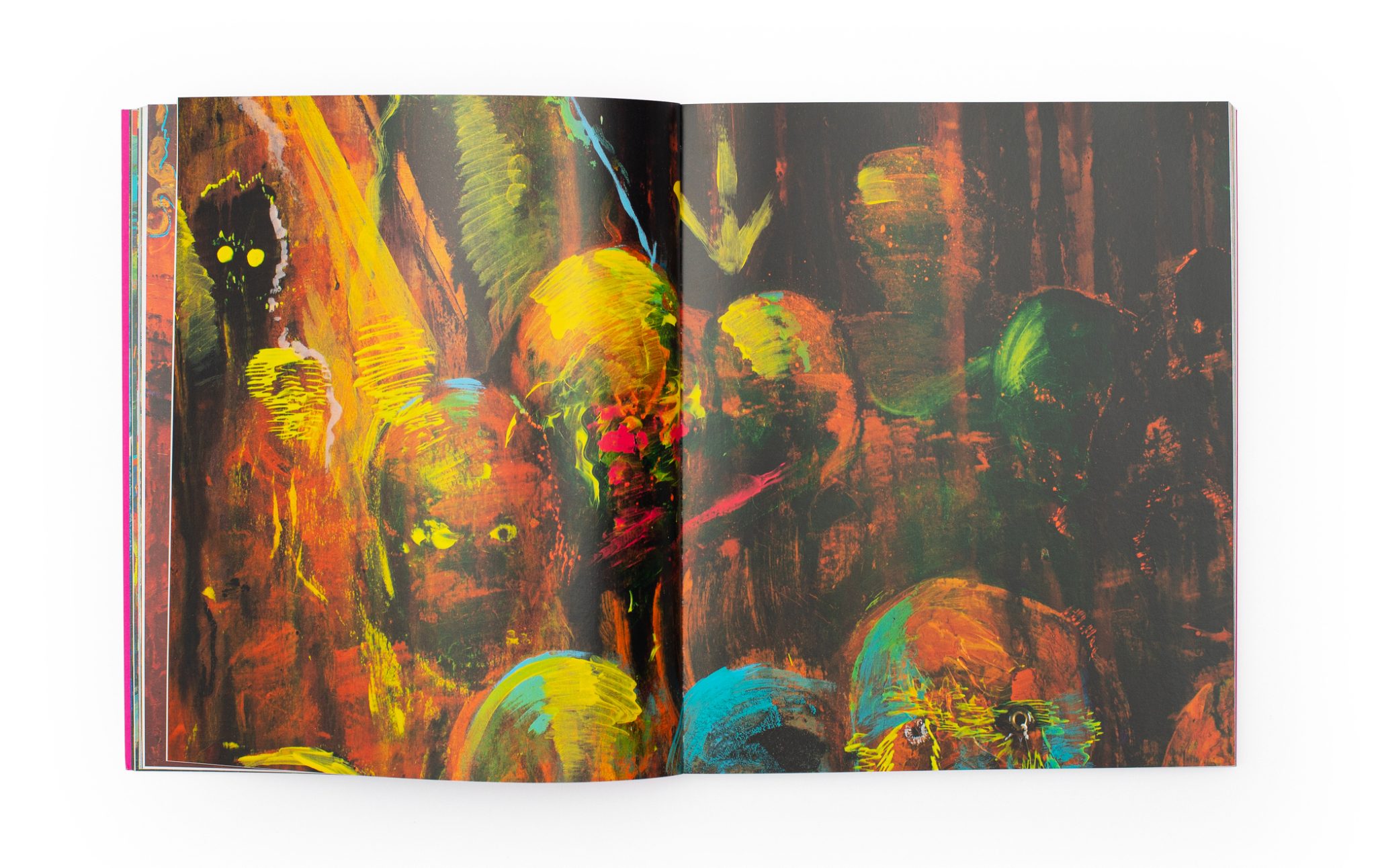 The book represents the last year of the painter's work, working with natural motifs, varied visuality and distinctly colorful expression. Dark forests, an underwater world, nocturnal frenzies, urban packs of nocturnal elements and the terrarium life of bright chameleons that Salajka keeps himself, photographed in meticulous detail by photographer Tomáš Rasl and in graphic design by Jana Vahalíková.