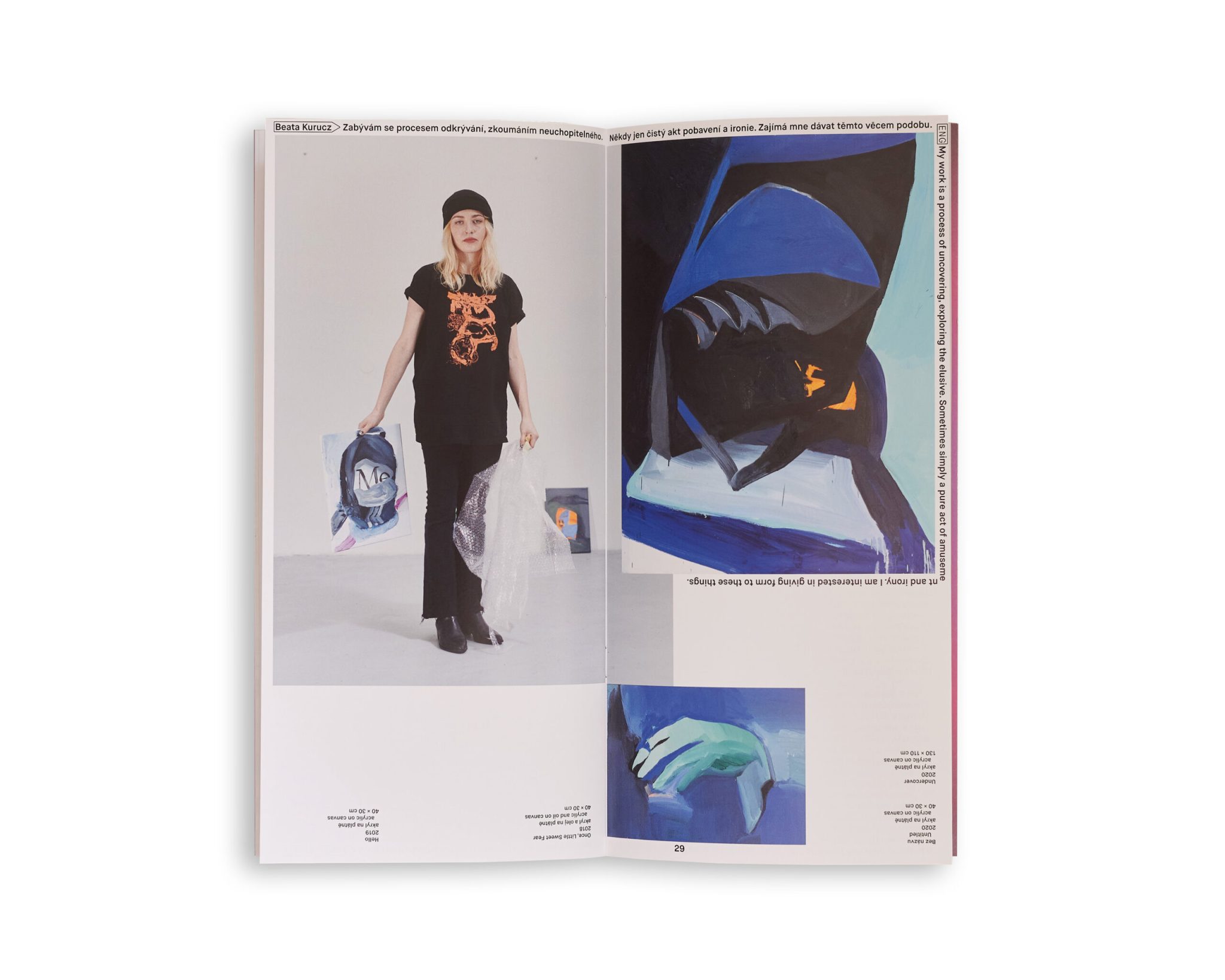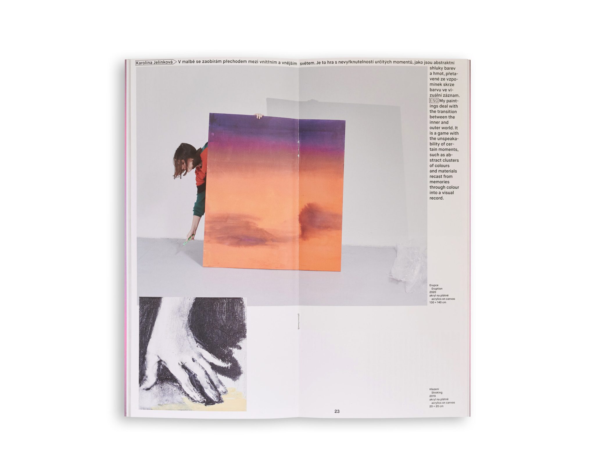 The term "painting" is feminine, which is why Trafo Gallery chose the name of the exhibition of the youngest Czech painting by recent AVU graduates with the words HER painting. It outlines the generation statement of eleven budding authors, born in the 90s and entering the art scene right now. Most of the selected works move in the interface between personal touching of the world, including the private, sometimes intimate sphere of life, and between the search for expression for hard-to-name emotions, material and social conditions. An essential moment here is the specifically feminine way of sensitivity and criticality, which makes the area of personal experience present against the background of recurring – mundane and extraordinary – rituals and dramas. The statement line of the clash between life assumptions and actual reality is very stimulating.
