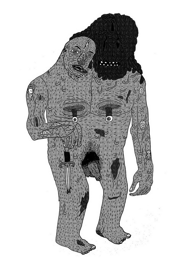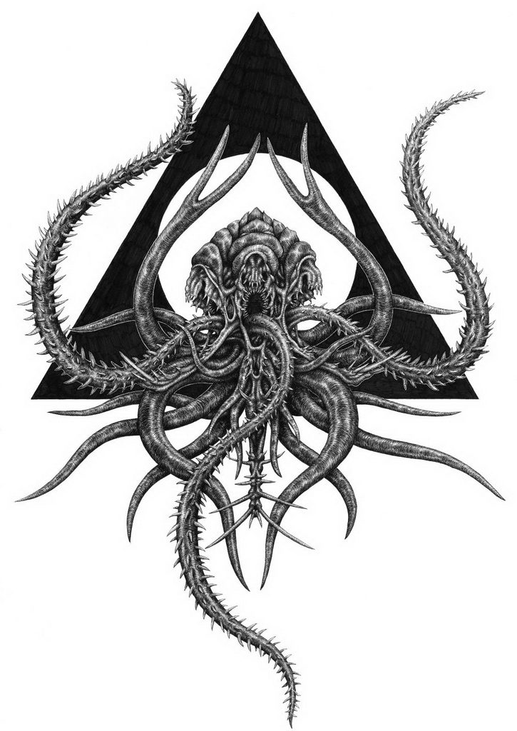 Cyklus deseti černobílých tisků k výstavě Život je bolestný a přináší zklamání: Massakr vol. 1, Lovecraft.
