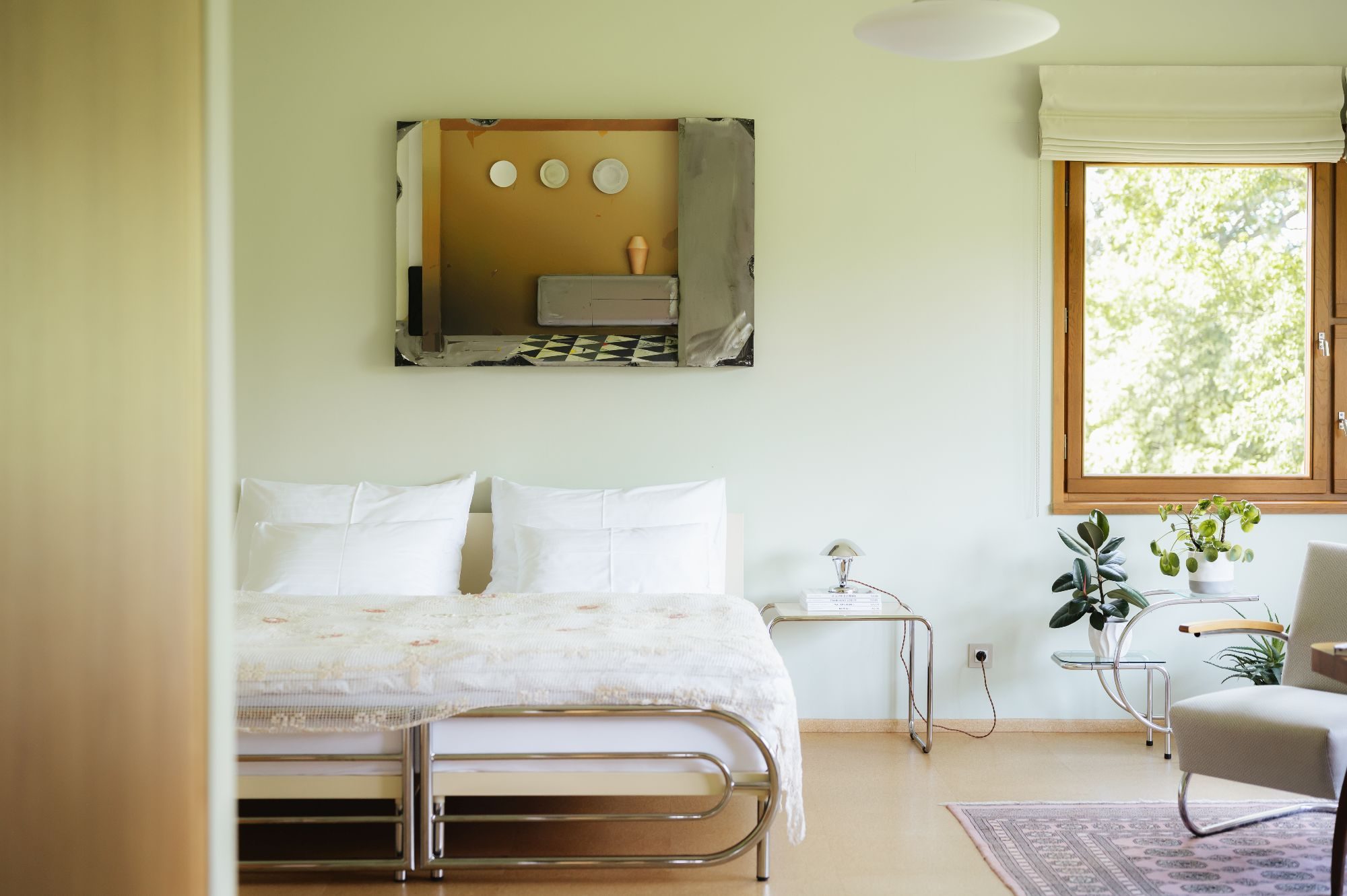 Umělec ve své tvorbě intuitivně reaguje na to, co architekti Janů a Štursa do Volmanovy vily skrytě vložili - atmosféru mezi funkcionalismem a snem, mezi geometrickou logikou a surrealistickou krajinou. Jeho reliéfy, vzniklé přímo pro vilu během krátkodobé rezidence, otevírají dialog mezi architekturou a uměním, které si divák dotváří podle vlastní představivosti.
