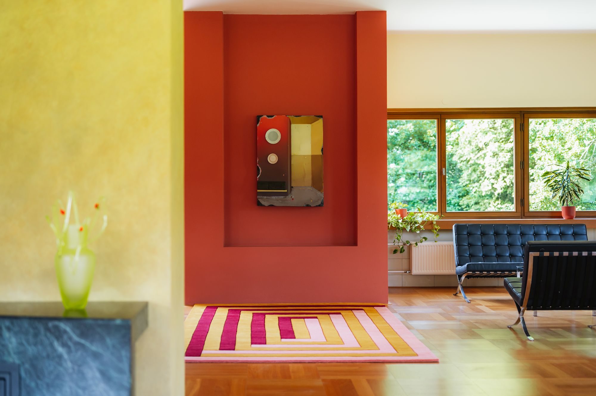 Reliéfy pro Volmanovu vilu vznikly v průběhu roku 2025, jsou inspirované její barevností a architekturou a chtějí citlivě navozovat dojem, že byly od samého prvopočátku nedílnou součástí interiéru. Ve snaze podpořit genia loci a výrazné tvarosloví domu představuje Pavel Dušek cyklus prací, které mají ve vile působit jako nenápadný šperk.
